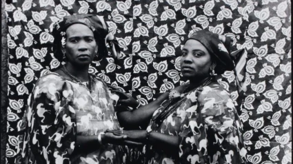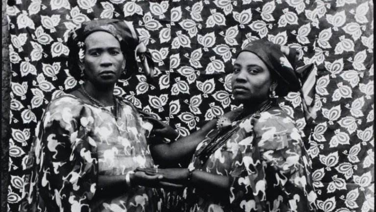 La foto que me ha llamado la atención la he visto en el catálogo de PhotoEspaña. Este año PhotoEspaña hace un guiño muy especial a la fotografía africana. En la imagen posan ante la cámara dos mujeres. La de la izquierda tiene la nariz muy chata y ancha, los labios finos. Su mirada no acaba de concentrarse parece distraída por alguna nube que lleve en el corazón. Son tantas las nubes. La mujer de la derecha, algo más baja, con los pómulos redondos y llenos sí fija los ojos en un gesto que parece de desafió. Las dos mujeres se dan una mano y se tocan los hombros. Las dos mujeres visten telas oscuras con el mismo estampado de avestruces. Los grandes pájaros corren en una y otra dirección sobre el fondo de tela de las túnicas, los avestruces levantan una cola florida, picotean el suelo, emprenden la carrera, decenas de avestruces en las túnicas de las mujeres, manadas de avestruces. Las dos mujeres posan con un paño de fondo en el que luce otro estampado: este es de grandes hojas agrupadas en ramilletes. Serán las hojas de alguna especie de la sabana. Pájaros que saltan y corren, arbustos feraces, las mujeres de la foto no pueden imaginar, no se les pasa por la cabeza posar ante la cámara con un neutro blanco roto, con un gris marengo. El mundo está lleno de pájaros pequeños y grandes, , de niños que juegan, de viejos que cuentan historias cal caer el sol, de árboles, de amaneceres, de amores, de bueyes que aran, de casas que se levantan, de amigos que hacen confidencias, de dolores, de desilusiones y de ilusiones, de taxistas que esperan en una parada durante horas, el mundo está lleno de estampados, ¿quién dijo vacío, quién dijo blanco roto o gris marengo? El mundo está estampado, sellado por una vida que sin haberla pensado, sin haberla proyectado, corre y vuela.