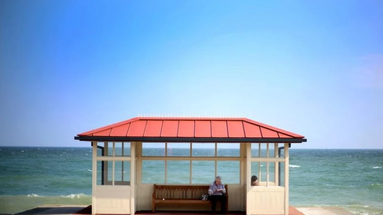 La foto de hoy retrata un desencuentro, un enfado, una rabieta. Su protagonista había salido a dar un paseo, a tomar plácidamente el sol al borde del mar. Y no ha sido posible. El cielo en la foto está despejado, al bajar desde las alturas hasta la raya del horizonte va pasando de un azul intenso a un celeste casi blanco. Se ha levantado un viento incómodo, viento sur. El aire no forma grandes olas pero tiene revuelta el agua que se va poniendo verde cerca de la playa. Los rizos de espuma saltan tímidos aquí y allá, salpican de margaritas del océano. En la orilla hay una gran caseta, con el techo rojo, las paredes acristaladas y unos bancos de madera. La señora que había salido a dar un paseo, que quería tostarse ligeramente, se ha sentado en uno de los bancos, el que le da las espaldas al mar. La señora lee una novela sin querer asomarse, lee la novela como podría estar leyendo en una estación de metro, en una biblioteca, en la terraza de un bar de la Sierra de Gredos. Antes de salir de casa se había hecho una idea de cómo iba a disfrutar de la mañana de sábado, tenían un plan. Pero el viento lo ha estropeado. Parece poca cosa, al fin y al cabo, el mar sigue donde estaba. Pero el Lebeche le ha agitado. No está dispuesta a negociar. El sábado por la mañana se ha echado a perder, su propósito es irrealizable, su deseo, el deseo de pasear acompañada de una suave brisa, tal y como había planeado, permanecerá incumplido durante toda la eternidad. Y le daría igual que vinieran a recogerla en un gran velero, le daría igual que su amiga del alma que vive en el otro lado del planeta le hiciera una visita sorpresa. Ella quiere una brisa suave.