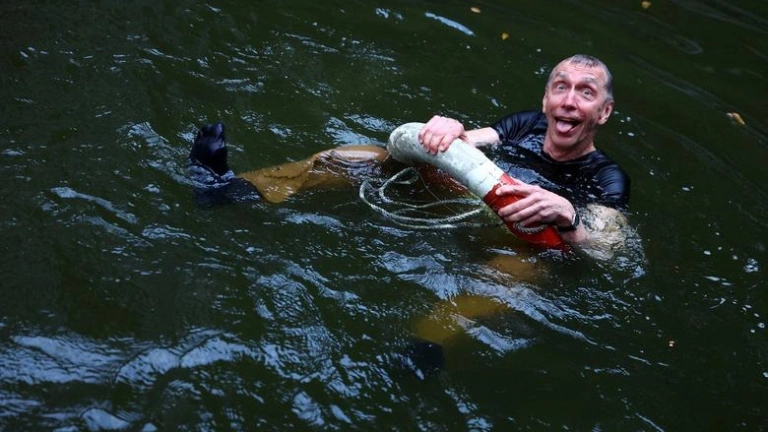La foto que me ha llamado la atención hoy es algo desconcertante. El protagonista se baña en un río o en un estanque de aguas oscuras. Parece agua de aceitunas recogidas tarde, casi negras. El bañista está vestido, con calcetines, con un pantalón color crema y una camiseta azul marino. No se ha quitado ni el reloj. Levanta las piernas y se agarra a un flotador de salvamento rojo y blanco, como los que se usan en los barcos. El estanque no debe estar frío. Nuestro hombre agarra el salvavidas como si fuera un volante. No es joven, le queda poco pelo. Pero saca la lengua y abre mucho los ojos. Hace una especie de mueca propia de una película de dibujos animados. Un hombre maduro flota en un verde inglés y se comporta como un niño de dos años. Será un trastornado, o un necio. Pero luego me entero de que le han dado un Premio Nobel. Salvo error no es un necio. Los necios, los tontos, se aferran no a un flotador sino a sus ideas. Los majaderos tienen ideas, todo el mundo tiene ideas. También los asnos tienen ideas, bueno más que ideas decisiones inflexibles. Se detienen a mitad del camino y no se mueven. Deciden tomar el camino de la izquierda cuando al cortijo se llega por la vereda de la derecha. El problema de los necios no es que tengan una cierta forma de pensar, es que no la abandonan nunca. Ya puede llover, tronar o nevar el necio sigue con su camisa de lino y sus bermudas. El necio asegura además que todo el mundo está demasiado abrigado. El hombre inteligente se baña con un niño, juega como un niño, porque le ha soprendido una gran alegría. El necio nunca se sorprende, siempre se queja.