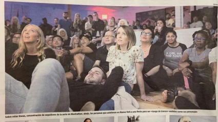 "La foto que me ha llamado la atención la publica hoy el diario la Razón. Está tomada en un salón muy grande en el que caben cuarenta o cincuenta personas. En primer plano hay un grupo que está sentado en el suelo y que mira como imantado algo que está sucediendo en una pantalla en alto. Ya es llamativo que en estos días de soledades invencibles, de aislamientos para evitar el dolor y el gozo del rozarse, los de la foto se hayan ayuntado para ver algo juntos, y hayan salido de esa cuarentena que nos mantiene lejanos de todo y de todos, en perenne profilasis, en perenne enfermedad de un destierro, sin más compañía que lo hemos comprado o compraremos.