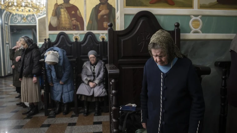 La foto que me ha llamado la atención es de una agencia de noticias que se llama Getty. Esta tomada la foto en una iglesia. Al fondo una puerta pintada con colores suaves. Una gran lampara de aspecto palaciego, a pesar de sus numerosas bombillas, difunde una luz blanca y escasa. Dos iconos que representan a dos santos quedan envueltos en cierto misterio. Las figuras salen de un fondo de oro purísimo, de una gloria luminosa. Bajo las imágenes un coro de madera oscura, cada silla parece un trono sobrio. En el coro seis mujeres. Con abrigos largos y con botas, cubiertas con un pañuelo. Con la cabeza ligeramente agachada. Suenan en las fotos los cantos de una liturgia oriental. Las voces bajas y profundas entonan un lamento y una súplica que viene de lejos. Las seis mujeres tienen en sys oídos, en sus ojos la devastación de la ciudad, el sonido de las bombas, los gemidos de los heridos, el abandono de los muertos. Y a las seis mujeres les parece casi imposible encontrar palabras para rezar. Se les agolpan en las tripas preguntas que formulan despacio y dominadas por una profunda tristeza. ¿Por qué? ¿Por qué tratan a las mujeres, a los hombres y a los niños como animales de matanza? ¿Por qué el dolor no se acaba? ¿Por qué reina la muerte donde mires? ¿Por qué un solo hombre es capaz de sembrar tanta devastación? ¿Por qué tenemos nosotras que pasar por esto? No lo merecemos. ¿Por qué otra vez las fuerzas más oscuras dominan nuestro país? Todas las preguntas de las seis mujeres se amasan hasta quedarse en un solo grito ¿Por qué Tú toleras todo esto, toda esta destrucción? ¿Dónde estás, donde estás Tú en este momento?