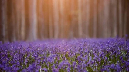 La foto de hoy tiene que ver con esta época del año, con el final de abril, con flores que salpican una tierra que parecía muerta, con esas raíces y semillas que despiertan incluso en una primavera seca como esta. De fondo un bosque, podría ser un pinar pero los troncos de los árboles son demasiado altos, demasiado rectos. De fondo los árboles, desenfocados. Y luego una alfombra púrpura que viene de lejos, una alfombra tupida, parece una plantación de terciopelo. El tapiz lo pintan cientos, miles de campañillas, de campanulas, con hojas sin soporte, con sus racimos de flores de color púrpura. El paño delicado parece teñido con un universo de caracoles, parece el manto de un emperador, la capa de un paleólogo de Constantinopla, el traje de una princesa normanda. Paño, manto, capa y traje que hubieran sido tejidos e hilados por manos perfumadas y pulidas a la luz de una luna llena. Esta alfombra de campañillas, sin embargo, ha brotado sola al borde de un pinar. No ha gente principal ni reyes mejor vestidos, mejor engalanados, mejor adornados que el campo de la foto con su cosecha violeta. Aunque el invierno ha sido seco, aunque la primavera está perezosa con el agua, aunque a veces parece que en el mundo todas las colinas se han hundido ahí están imprevistas las campanillas. Duelen en los ojos las flores porque no hay en ellas ni esfuerzo ni desvelo, ni cuidado. Tienen la gallardía regalada. Duelen las flores en los ojos porque despiertan, mueven y remueven una nostalgia difunta que estaba enterrada.