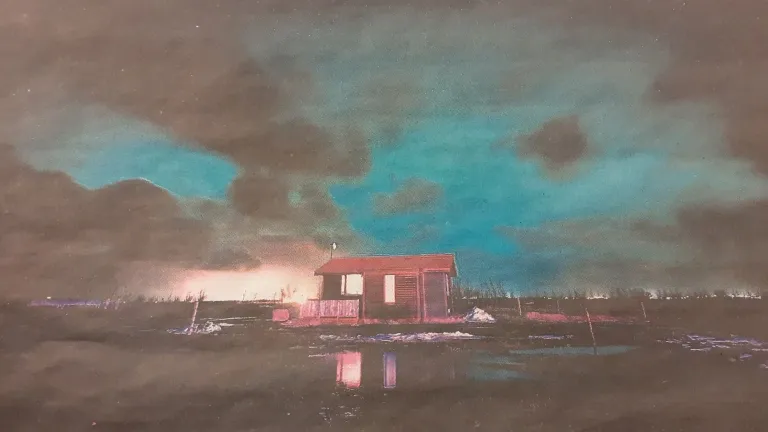 La foto que me ha llamado la atención la he visto esta tarde en La Vanguardia. Es un paisaje muy extraño con una cabaña al borde de un lago. La cabaña tiene el color de una buganvilla encarnada. El cielo es un campo casi infinito de esmeraldas. Tiene el cielo el verde de una joya en las manos de una señora a la que la madurez la he dado una especial belleza. Cielo esmeralda con nubes altas. Y en una esquina del horizonte un incendio, un estallido, una aurora escandalosa. Una aurora en el momento más inesperado, de repente, porque sí. Una aurora para desmentir a los que piensan, alos que pensamos en realidad nunca pasa nada, una aurora para desmentir a los que piensa, a los que pensamos, que somos pobres diablos, números, fechas, papeles olvidados en sótano entre millones de papeles y que, por eso no tenemos derecho, -que te has creído- por eso no podemos esperar que suceda algo, que el día comienzo con un estallido de luz en un mar turquesa que encienda de rozo. Una aurora en pleno estallido, un comienzo de un día que no es como los otros comienzos. Para despertar a los que piensan, a los que pensamos, que en realidad lo único que cabe esperar es llegar a la noche sin sobresaltos, poder ver a nuestro equipo el sábado, poder salir a tomar una cerveza con los pocos que nos quedan fieles, dormir bien. Una aurora como una bomba para los que pensamos que lo único que nos quedan son nostalgias acartonadas, para los que solo aspiramos a dormir bien y no tener muchos sobresaltos y echar, de vez en cuando un trago, y no perder las compañías que se han convertido en costumbre, compañías con las que ya nos queda poco de qué hablar. Para nosotros, una aurora que estalla en un cielo esmeralda.