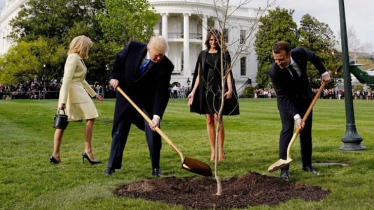 El árbol que Macron le regaló a Trump ha desaparecido de la Casa Blanca. Hablamos sobre regalos envenenados.
