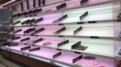 Cámaras y estanterías vacias en los supermercados por el bloqueo de los países vecinos