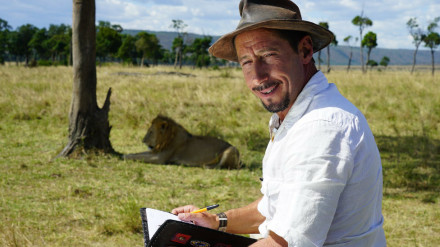Le encontramos en pleno rodaje de una serie documental en la reserva natural de Masai Mara (Kenia).