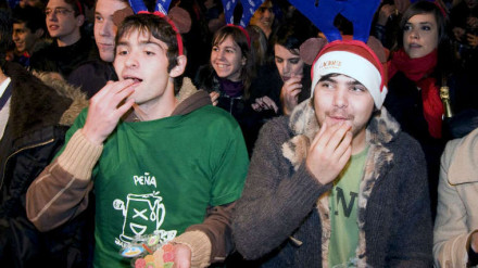 Los vecinos de Ventosa de San Pedro han elegido el Puente de la Constitución para tomarse las uvas todos juntos