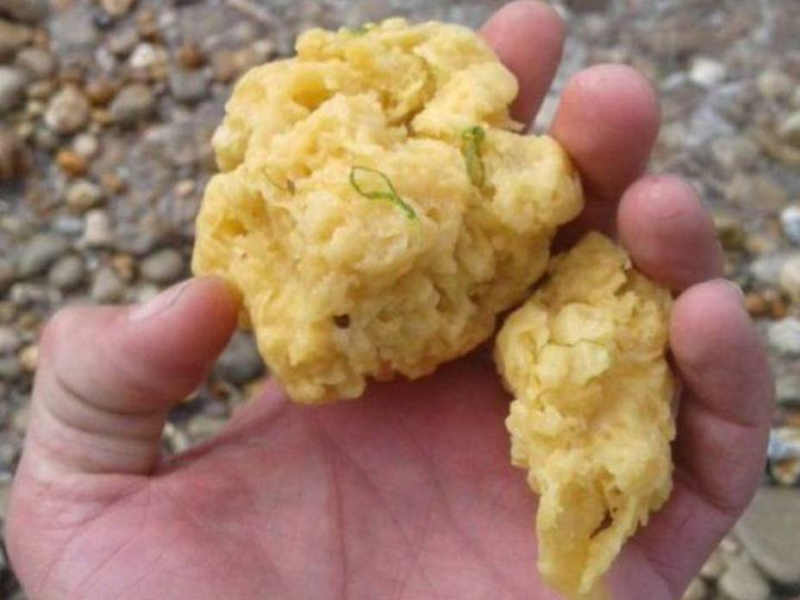 Son informes, de color amarillento, con una textura similar a la de una esponja y aparecieron en cientos de miles en la costa del norte de Francia.