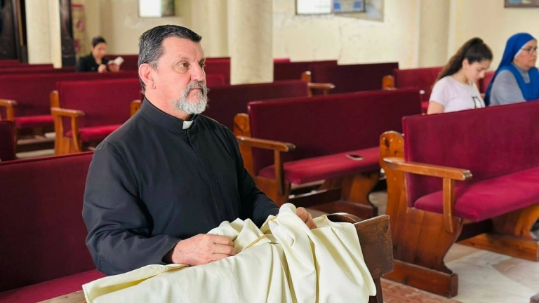 El Padre Carlos Ferrero, provincial del Instituto del Verbo Encarnado, vive en la parroquia de la Sagrada Familia, la única iglesia católica de Gaza. En ningún momento ha querido abandonar a los fieles que se encuentran en el interior del templo.