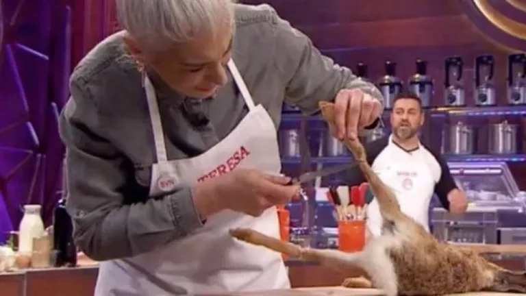 Los concursantes de Master Chef tuvieron que despellejar y quitarles las vísceras a una liebre para hacer una recete del chef Luis Lera.