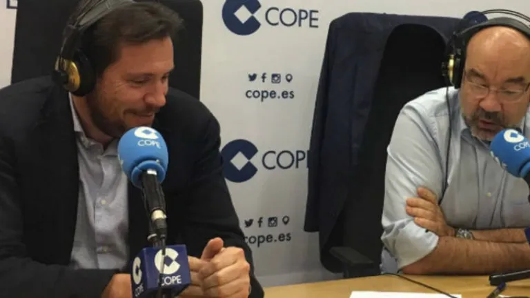 Óscar Puente, alcalde de Valladolid (i) junto a Ángel Expósito (d), director de La Tarde, desde el Museo Patio Herreriano de Arte Contemporáneo Español en la ciudad vallisoletana. Foto COPE