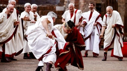 Ayer fue 15 de marzo, el famoso día de los Idus de Marzo. Y en la antigua Roma era el día en el que se celebraba que una luna llena iluminaba el cielo sobre el foro, sacaba de la oscuridad a los que jugaban a los dados, alumbraba a los borrachos pendencieros. En la foto ocho romanos que han almorzado alcachofas y alubias con pasta, vestidos con toga de senadores, empuñan grandes facas. Empuñan los grandes cuchillos de la conspiración. Están matando otra vez a César.
