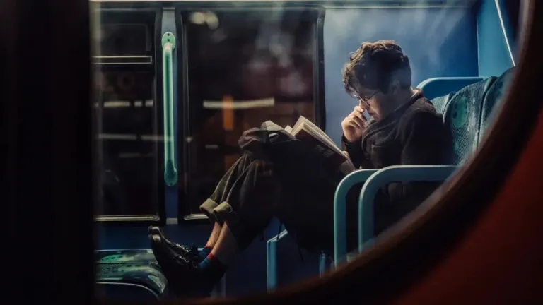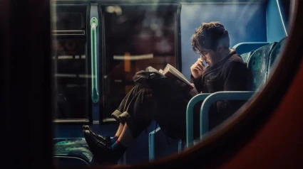 La foto de hoy está tomada al altas horas de la madrugada en una estación de tren de cercanías, una estación subterránea. Esta tomada cuando chicas jóvenes duermen con la cara apoyada en los cristales y tienen dos grandes ríos de lágrimas congeladas bajo los ojos. Cuando las risas tienen el vaho del alcohol. Cuando los sobrios son pasajeros insomnes, borrachos de desilusión o de ansiedad. Cuando las parejas se abrazan en una oscuridad de naufragio. El fotógrafo ha asomado su cámara por una de las ventanas de un vagón. La luz es fría. Y bajo esa luz, en el vagón, hay un joven largirucho y abstraído. Tiene los pies en alto, los apoya con un gesto in cívico en el asiento que tiene delante. El chico es un snob, calza zapatos negros y se ha remangado los pantalones como si fuera a pescar. Le asoman unos calcetines de colores y unas canillas delgadas. El joven está sorprendente mente despierto, avisado. Ni duerme ni sueña, mira con sus ojos claros, sin sombra, un libro que descansa en sus rodillas. No le mantiene desvelado ni la obligación, ni la necesidad de obtener una buena nota en un próximo examen, ni una sentencia judicial ni una deuda pendiente, tampoco encargo alguno. No habría encargo, obligación ni necesidad que pudiera mantenerle tan atento. No tendría energía ni voluntad para cumplir con su propósito. AnDa desvelado por gusto, porque persigue una satisfacción y cree haberle vista la cola. Anda desvelado porque ha encontrado huellas de un animal que se llama deleite, porque ha visto volar en el tren de madrugada las aves de la complacencia.