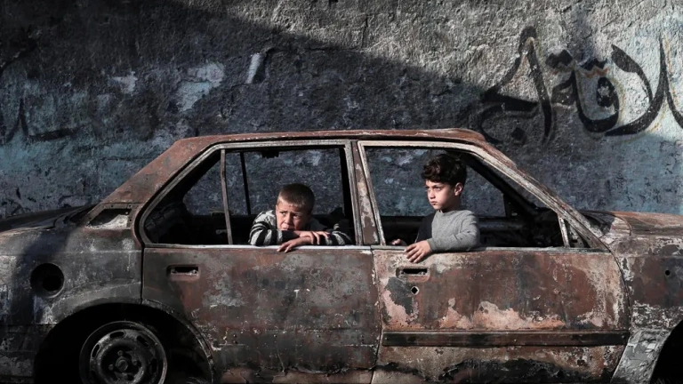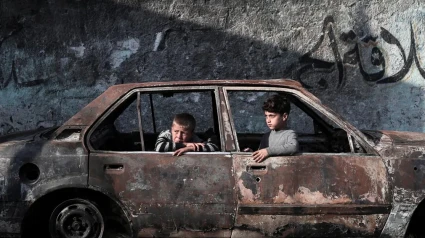 Foto de un coche carbonizado, un coche convertido en un esqueleto de chapa. De las ruedas solo quedan las llantas. Las puertas, los aletas, el capó con el color de una herrumbre a manchas que dibuja fantasías. El coche yace no en un desguace sino en calle cualquiera, junto a un muro negro por el hollín y decorado con un bonito grafiti de letras en árabe. Los vecinos ven el cadáver de la maquina que no termina de descomponerse cuando cierran la puertas de sus casas para ir a trabajar muy temprano. Cuando de noche vuelven del café o de alguna fiesta familiar, allí sigue, entre las sombras. Cuando se asoman al balconcillo los vecinos intentan no mirar ese cuerpo sin vida, esa vergüenza que los pone en evidencia. Los pone en evidencia porque ellos creían vivir en un barrio tranquilo ilo y limpio hasta que el coche ardió. Los pone en evidencia porque nadie del ayuntamiento ha venido a recoger los restos de aquel incendio. Los pone en evidencia porque los vecinos piensan que es bochornoso no haberse puesto ellos de acuerdo en alquilar una grúa y llevárselo lejos a un sitio donde poder olvidarse del día del desorden, del día que lo quemaron. Los vecinos intentan girar la cabeza, mirar hacia arriba, mirar hacia el muro y no ver, pero allí sigue el automóvil que se ha convertido en un deshonor, en un baldón, en una afrenta, en un obstáculo para su alegría. ¡Que tontería que un coche quemado sea fuente de tanta amargura¡ parece una tontería pero hay que vivir con un coche quemado cerca de casa para comprender la humillación. A las ventanillas del automóvil sin cristales se asoman dos niños, uno rubio y otro moreno, que lo han convertido en transporte para sus juegos.