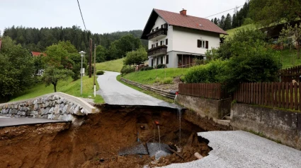 Foto de una estrecha carretera que serpentea por un pueblo austriaco en las estribaciones de los alpes. Es temprano, el cielo gris puede no ser la última palabra de la jornada. Puede despejarse, puede brillar esa luz única que fulge en los pueblos de montaña, una luz como de oro, como de niñez consciente que saca a la vista todos los misterios cálidos de las cosas: de los geranios rojos en flor, de los frutales sobre prados alfombrados de verde, de las manos que reposan sobre un regazo. Puede que abra el día y que las cosas queden bañadas por esa luz que te hace mirar todo como antes no se había visto. En la foto hay una casa blanca a la orilla de la carretera. Una casa blanca con techo de dos aguas, con balcones en el primer y segundo piso, con visillos finos en las ventanas, con un felpudo gordo en la entrada para sacudirse en invierno la nieve de las botas. Todo en esa casa y en el barrio es quietud, orden, silencio. La hierba del jardín segada con precisión de cirujano, la bajera ordenada, las voces quedas durante el día y a partir de las siete de la tarde en un un sosiego de cementerio. Ni el gato se atreve a utilizar la gatera para no romper el equilibrio y la quietud de los alpes austriacos. La quietud la ha roto, como cuenta la foto, un derrumbe que ha hecho un gran boquete a pocos metros de la casa blanca y silenciosa. El estruendo de una montaña aburrida por tanto orden ha dejado un gran agujero y la carretera cortada. La casa, que ya estaba sola en su aburrimiento, ahora está sola y aislada.