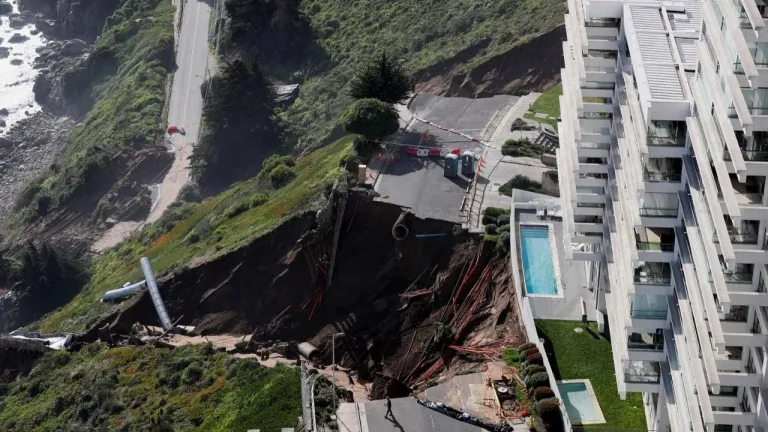 Foto de un derrumbe. Es una foto tomada desde arriba, con lo que se ven bien los detalles. Una carretera hace curva a los pies de un bloque de apartamentos. Apartamentos nuevos, con terrazas blancas y cristales por barandillas para que no se pierda un detalle del paisaje. Para que se vean bien las olas. Apartamentos con dos piscinas que miran al Océano Pacífico. Justo debajo de la piscina más grande, la carretera se ha venido abajo. Y donde antes había asfalto ahora hay un gran socavón en el que cabría otro bloque de pisos. Socavón de tierra oscura y bien regada que llega casi hasta el borde del mar, como una playa nueva. Al borde del gran agujero pasea un hombre que parece muy chiquitito, en realidad lo es. Va y viene delante del precipicio como un león en una jaula, como un padre a la puerta del paritorio, como un comprador tímido al que no le gusta regatear. Hasta hace muy poco la curva que ha desaparecido era una más de las curvas y de las rectas que conducían a un cierto destino. Ahora es la curva que ha desaparecido y ha desaparecido para dejar a los vecinos de la zona sin poder llegar a cierto destino. El destino sigue estando donde estaba, con sus carteles, con sus casas blancas, con sus calles, con sus bares y sus gentes. Pero ya no hay manera de llegar. El pueblito al que llegaba la carretera, el pueblito al que todos quieren ir se ha quedado lejos. Inalcanzable la meta, indescifrable el alfabeto, incomprensible la lengua. Habrá que buscar otro camino.