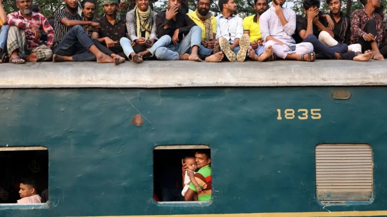 Foto de un viejo vagón de tren detenido en una estación y cargado de hombres que viajan sobre el techo. El vagón pintado de ese verde ferroviario de los antiguos expresos. La pintura está gastada y la chapa aparece debajo de varios desconches. En la foto tres ventanas sin cristales, una con la persiana echada, las otras dos abiertas. Por las ventanas abiertas, sobre un fondo negro, se asoman un padre con un bebé en brazos y un muchacho nostálgico que mira hacia el infinito porque acaba de leer un poema o porque tiene ardor de estómago. Y en el techo del vagón trece hombres, doce jóvenes y una maduro y entrecano. El maduro viste un traje tradicional y calza sandalias. Los jóvenes van descalzos y con pantalones vaqueros. Todos están sentados tranquilos, relajados, algunos sonríen, otros se rizan los pelos de la barba, uno de ellos fuma y da una calada intensa y profunda. Podrían estar en una tetería, en una terraza, en la plaza del pueblo. Viajan sin pagar billete para volver a casa unas horas porque en su país se celebra una fiesta parecida a la Navidad. Y cuando vayan acercándose a su pueblo irán poniéndose más erguidos y cuando bajen del tren empezaran a caminar dándose importancia para hacer ver a todos que el que se va a la capital se transforma y gana confianza en sí mismo. Y el que vigila de noche una obra dirá que manda más que el arquitecto, y el que es maestro dirá que le falta poco para llegar a Maestro, y el que comparte piso con 20 más contará que vive en el mejor barrio y el que tiene un sueldo miserable derrochará en la taberna. No lo hacen por mala fe , solo quieren contar una historia bonita, una bonita historia de la que ellos son los protagonistas.