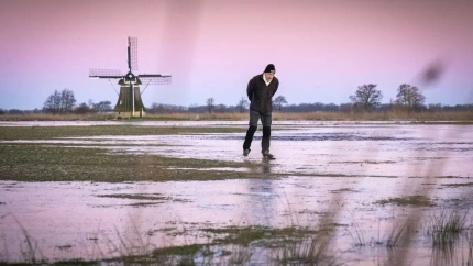 Foto de una escena invernal en un país del norte de Europa. Foto de ese momento breve en el que el mundo está ya bañado de luz pero el sol todavía no acaba de salir. Y el cielo de la foto tiene un tinte ligero entre púrpura y rosa, podría ser también un agua de acuarela malva. Al fondo un molino rechoncho y cansado sostiene sin esfuerzo sus aspas. Las aspas del molino no se mueven solo recogen la sangre limpia de la aurora. El alba de la foto se mira en una lagunilla de hielo, un espejo de rosas, grises y azules. Un vecino de la zona patina con oficio sobre ese hielo. El vecino lleva las manos enlazadas a la espalda y mira al suelo para no caerse. El vecino patina por el ahora, por el ahora de un sol que no ha salido todavía, por el ahora de siempre. Y será el frío, será que ha pasado mala noche, será que ha conocido a alguien, será el alba, pero el caso es que al vecino le ha dado un ataque de asombro. Siente sobre su piel, más que ver, el cielo con mejilla de niña, siente más que oye el crujir de los cristales de hielo con su quejido cariñoso, siente mas que oye el alboroto de unos pájaros que no tienen miedo a la pelona, gusta más que huele la humedad quieta, el verde de los juncos que buscan el cielo, huele más que gusta la primavera lejana. Al vecino, ya digo, le ha dado un ataque de asombro. Y mientras patina el alba le parece una maravilla existir entre las cosas que existen, estar vivo entre las cosas vivas, le parece una maravilla vivir en un planeta que gira, en un tiempo que siempre es el mismo y siempre es diferente, le parece una maravilla darse cuenta.