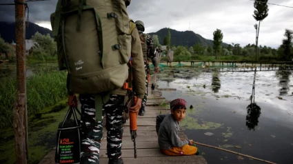 Y los niños, los niños como el de la foto al borde de las charcas donde nada parece moverse, tocan con cañas de bambú la única corriente que en silencio todo lo arrastra.