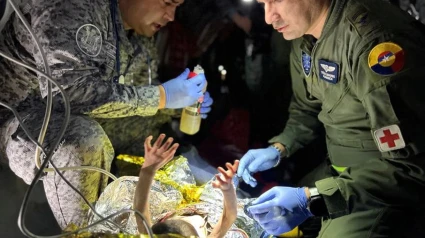 La foto de hoy está tomada en una selva oscura, en una selva fría y cruel. En una selva inhumana. La luz ha entrado en ella con unos potentes reflectores conectados a un grupo electrógeno. Dos hombres uniformados, uno de gris y otro de verde, con las rodillas hincadas en el suelo, están muy concentrados atendiendo a un niño que reposa en una camilla. Uno de ellos sostiene una botella con suero. El niño está tapado con mantas de esas que se usan ahora en las emergencias, mantas como de papel de plata. Dos bracitos muy delgados, brazos que se han quedado en hueso y pellejo se levantan como rindiéndose, entregándose, por fin, a cuidados que han tardado en llegar. Los bracitos enjutos y flacos de carnes sostienen dos manos orantes, dos manos sorprendidas por el milagro. El niño se deja hacer, como cuando su madre le cambiaba el pañal, como cuando su madre se lo colgaba del pecho, se deja hacer como cuando su madre le cogía la mano y lo lleva al trastero y el niño pensaba que solo nunca se hubiera adentrado en la oscuridad pero que con su madre era otra cosa, el niño se deja hacer como cuando su madre le cantaba una nana para que durmiera pronto, el niño se deja hacer como cuando su padre le agarraba la tripa para enseñarle a nadar, como cuando su padre le curaba las heridas, como cuando su padre le cambiaba el pañal, el niño se deja hacer como cuando la maestra le decía que la p con la a se dice pa. El niño se deja hacer, no conoce a los dos uniformados pero es un niño listo y se deja hacer. Se deja hacer, se deja ser hecho.