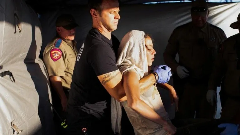 La foto de hoy está tomada en una frontera, en la tienda de campaña de una frontera en un día de mucho calor. La tienda es grande, cabe un grupo de personas de pie bajo las lonas. Un sol de castigo se cuela por la puerta. Varios uniformados miran sin mirar como una mujer joven se derrumba, seguramente está insolada y deshidratada. No es fácil mantener los ojos fijos en un cuerpo vencido por la fatiga y el cansancio, un cuerpo sediento y exhausto. A la chica le han puesto una toalla húmeda en la cabeza y parece una virgen dolorosa. Con los parpados caídos y la boca entornada se deja caer. Rodaría por el suelo si un mozo fuerte no la sostuviera recogiéndola por debajo de sus brazos flacos. El muchacho viste de negro, con pantalones de faena y una camiseta ajustada. Se ha visto sorprendido por el desmayo. El muchacho es robusto, veremos si le acompaña el ánimo para soportar un peso más difícil de sostener con el alma que con los músculos. El muchacho tiene los bíceps trabajados, los ha labrado con horas de gimnasio, a base de ejercitarse, de subir y bajar pesas, de estirarse, de moldearse. El muchacho ahora no se mira la anatomía en un espejo, no piensa si se gusta o si se deja de gustar. Simplemente socorre una necesidad, evita un accidente, impide que la chica se haga más daño. El muchacho tiene un gran tatuaje en el brazo con una frase de dos líneas. La primera linea se lee con claridad, dice “la vida es”, pero la segunda línea está borrosa en la foto. Nos quedamos sin saber qué es la vida para el muchacho. En realidad no nos hace falta ninguna definición, es suficiente con mirar.