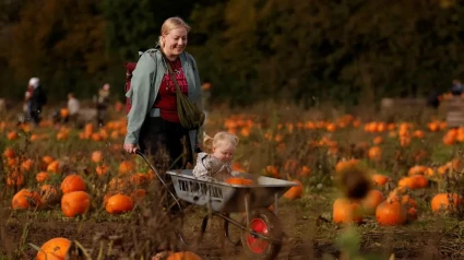 La foto puede parecer a muchos la imagen de un parque temático, con sonrisas de pega, con alegrías ultraprocesadas y júbilos precocinados. Pero el contento, el contento de una madre y una hija siempre es sincero. La madre y la hija pasean por un cortijo en el que se cultivan calabazas, grandes calabazas redondas. Las matas son tan ralas que no se entiende que de plantas tan canijas nazca una hortaliza tan grande. Calabazas para todos los Santos huecas, con poca o ninguna carne. No sirven para pure, ni para croquetas ni para bizcocho. Calabazas criadas para abrirles una boca y unos ojos huecos, para hacer de ellas lámparas que espanten a las sombras. La madre de la foto -ya lo he dicho- sonríe divertida mientras carga con carretilla en la que su hija mira con mucha atención una calabaza a la que pronto le sacarán las vísceras de pepitas. La niña, como la madre, es rubia casi albina y la han peinado con dos coletitas. Cosecha alegre, la alegría no se puede fingir. Cosecha de calabazas que servirá para ahuyentar las sombras de los desaires, de los desdenes, de los rechazos, del desprecio, de los rigores de barcos hundidos, de niños con sed, de las devastaciones de los proyectiles, de los estrépitos. Cosecha alegre de calabazas que serán lámparas para luchar contra las sombras.