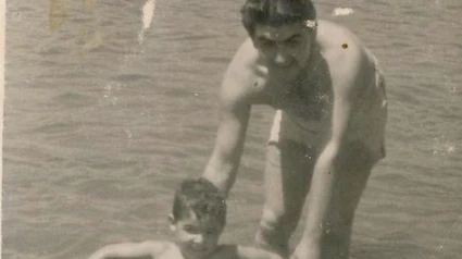 La foto de hoy la he encontrado en un blog muy curioso, un blog que se llama Toledo Olvidado en el que se rescatan desde hace muchos años retratos de la ciudad. En este caso la foto es de aquellas reveladas sobre papel sepia, en blanco y negro, con un tono mate. Ha debido de estar guardada con poco cuidado porque esta rayada. Al fondo un espigón que entra en el Tajo y después el cauce del río que se encabrita con algunas piedras. Y mirando a la cámara, un padre y un hijo. Los dos están en traje de baño. El padre, joven, no se ha despeinado y lleva la raya en medio. Sujeta, inclinado, la cámara de una rueda en la que está repanchigado el niño. Tampoco la criatura se ha mojado mucho. El agua no les alcanza para mucho, al padre se le queda en la pantorrilla. Para bañarse completos tendrían que tumbarse y pegar la espalda al fondo y empeñarse en no moverse aunque el agua esté fría porque a poco que se menearan se saldrían de la poza. La foto despertaba en una madre, en un hermano, en una novia un recuerdo alegre o nostálgico, o dolorido. El recuerdo de alguien que conocía bien a los protagonistas. Nosotros solo vemos a un padre y a un hijo, quizás se llamaban Jesús y Jesusito, quizás uno de ellos murió en trágicas circunstancias, o quizás fue presidente de la Diputación. Nosotros vemos a un padre y a un hijo un día de verano de Toledo, con el canto de la chicharra en los oídos, con la siega ya terminada, con la noche sin refrescar en la piel, con el bochorno emboscado en las calles de piedra. Vemos a un padre y un hijo chapoteando en un agua que no llega a estar fresca y que no les alcanza para el baño. Lo de que algo no alcance sí que lo conocemos.