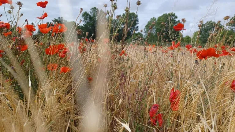 La foto de hoy es la foto de un campo de Castilla. De lo que se llamaba Castilla la Nueva, la recuperada, la renombrada, la de los traductores. Un campo de castilla de finales de mayo después de una noche entera jarreando. La tierra sigue con sed. El trigo está ya granado pero casi no ha crecido. Las espigas apenas levantan tres palmos del suelo. Y la alfombra de oro rubio se alarga hasta unos álamos lejanos. Los menea el aire y los álamos cantan la canción de un arroyo que no corre, la canción de las lentejuelas de una princesa joven. El trigo está salpicado de amapolas. Las novias del campo, los corazones rojos juegan con las barbas del cereal que luego será pan. Las primeras flores coloradas, las primeras sedas son promesa de las que están por estallar. Porque decenas, cientos de capullos esperan el momento oportuno para abrirse. Será entonces cuando un anuncio escarlata, un anuncio de miles de amapolas de sangre, proclame que el trigo está listo para la cosecha, para pasar por la era, para la trilla, para que se avente la paja, para que se pueda moler el grano. Anuncio de miles de amapolas de sangre volando sobre el trigo de oro. Corpus en Castilla la Nueva, la recuperada, la renombrada.