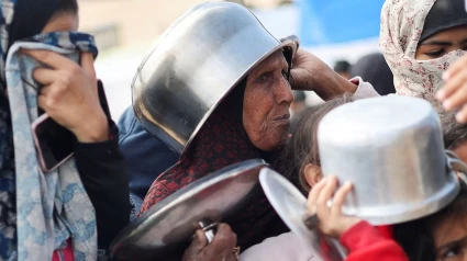 Foto de una cola. De una cola de mujeres de diferentes edades. Solo se le ve la cara a la más vieja. Una de las jóvenes que está en la cola, móvil en mano, se tapa el rostro con un pañuelo. Otra ya usa velo hasta la nariz, por encima solo le asoman unas cejas anchas y unas pestañas largas. Las niñas que están en la cola están tapadas por las ollas. Todas llevan ollas. Solo se le ve la cara y las manos a las más vieja. La mano izquierda oscura y curtida como una pieza de cuero, la mano izquierda con los nudillos rozados y un anillo de oro bajo sostiene la tapa de una cacerola. La tapa de la cacerola boca arriba parece una antena que intenta localizar algún auxilio del cielo. La vieja lleva la boca cerrada con unos labios de madera, unos labios estrechos en los que desembocan las arrugas que nacen debajo de la nariz y los surcos que cuartean los pómulos. Las arrugas vuelven a organizarse en torno a unas ojeras profundas y a una frente sin cejas. Los ojos de la vieja son dos charcos que se asoman al fondo de un pantano sin agua, son lo que luce en el final de dos cuevas. Los ojos de la vieja, pequeños, de color de miel, cansados, miran muy atentos por ver si llega el auxilio del cielo en forma de caldo o de potaje con bofes de oveja o si acaso un guiso con algo de unto, con un puñaito de garbanzos y algunos fideos. La vieja se ha puesto la olla por montera y la panza de la cacerola parece un casco grande, un casco para protegerse de las maquinas de la guerra, para protegerse de si misma. La vieja espera un auxilio del cielo.