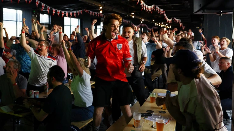 Foto de un momento de éxtasis, como el momento que experimentaban los cazadores primitivos después de abatir una gran pieza que les garantizaba proteína para algunas semanas, como el de coronar después de mucho esfuerzo una bella cima, como el de aprobar un examen, como el de un abrazo en un aeropuerto después de una larga ausencia, como el de tocar tierra después de una larga travesía. Un momento en el que no es posible la distracción, un momento en el que todo es presente, no hay mirada hacia el pasado o hacia el presente que disperse las fuerzas. Todo está sucediendo en ese momento, no hay recriminación, no hay complejos que velen el instante. En la foto decenas de seguidores de una selección de fútbol están sentados en bancos de pino sin respaldo en torno a mesas en las que responsan vasos de cerveza de plástico. En realidad ya no están sentados porque muchos de ellos se han levantado, alzan las manos por encima de la cabeza, aplauden, gritan con las bocas muy abiertas. Uno de ellos, el protagonista de la foto, con la equipación de la selecció nacional aprieta los puños mientras salta, abre la boca, chilla y agita , todo a la vez, un tupé de color naranja. Al pelirrojo le luce en las pupilas una alegría sencilla, como la de un niño delante del escaparate de una pastelería. La foto retrata un momento de júbilo primitivo, el contento de estar juntos, el contento de ganar juntos. Y en el preciso instante en el que todos levantan los brazos, en el que se celebra la caza de la pieza que tanto ha costado, en ese momento de triunfo rotundo se asoma ya la tristeza de lo insuficente. Volverá el hambre, volverá la sensación de que todo ha sido poco a pesar de que ha sido mucho, muchísimo. Ni mucho ni muchísimo es todo, siempre se queda corto.