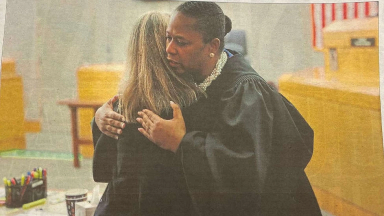 El juzgado de la juez Tammy Kemp se ha convertido en el juzgado de los abrazos. La juez, tras pronunciar la sentencia, abrazó a los familiares de la victima que estaban desolados. Y el hermano de la víctima quiso abrazar a la mujer policía que había cometido el asesinato para decirle que no le deseaba nada malo. La asesina había confesado su crimen y el hermano de la víctima no quería cargar con ese fardo que supone el mal sufrido, quería soltar lastre, no encadenarse al laberinto del propio dolor, al pasado. El hermano de la víctima quería tener futuro y por eso abrazó a la asesina de su hermano. Pero faltaba el tercer abrazo, el que retrata la foto. La polícia asesina le pidió un consejo a la juez negra que le acababa de condenar y la juez negra le leyó una cita bíblica y se levanto para tomarla en sus brazos. La señora juez Tammy Kemp ha explicado que la mujer policiía blanca ha cometió un acto horrible aunque añadió que ninguno de nosotros somos lo que hemos hecho, lo que hemos hecho mal. Y ahora los moralistas discuten y se lían con esta historia de negros y blancos, los moralistas discuten escandalizados porque se hacen muchos líos con esta cadena de abrazos entre victimas, asesinos y jueces. Que se líen los moralistas, yo lo que veo es dos mujeres abrazándose.