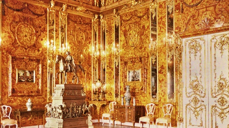 En el siglo 18, Federico I de Prusia hizo un regalo de incalculable valor al Zar Pedro El Grande... la Cámara de Ámbar, y fue considerada la octava maravilla del mundo. Está cámara formada por mosaicos tallados en ámbar de color miel sobre pan de oro y decorada con piedras semipreciosas sobrevivió a la Revolución Rusa, pero fue desmontada durante la segunda guerra mundial.