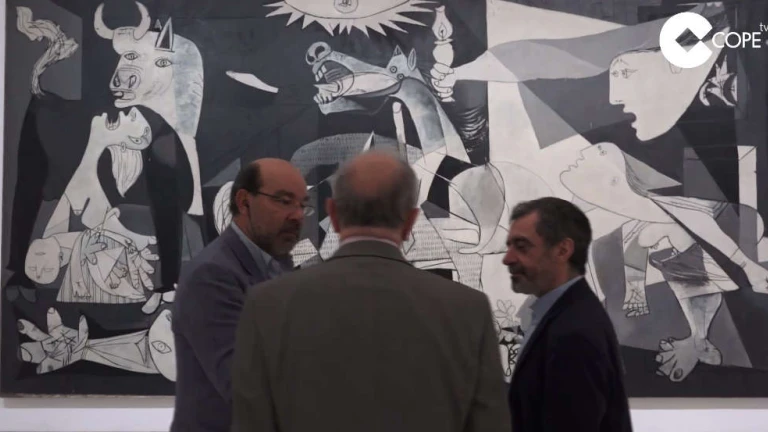 "Picasso sabía que el siglo XX era su siglo, pero que era un siglo que había perdido la ilusión, que la muerte se poducía producir de forma industrial, cuando su madre le empieza a escribir desde Barcelona, desde que empieza a leer lo que dicen los periódicos es cuando el Guernica comienza a ser" explica frente al cuadro Manuel Borja Villel.