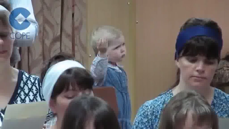 Bebe ruso dirigiendo un coro