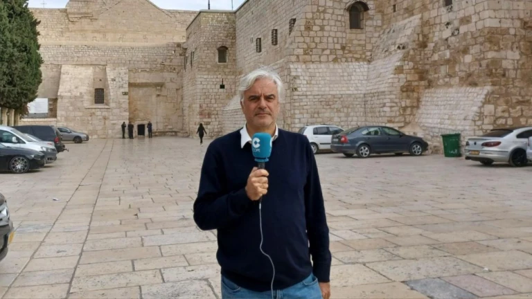 La explanada de la Basílica de la Natividad está vacía, sin peregrinos, como muestra De Haro