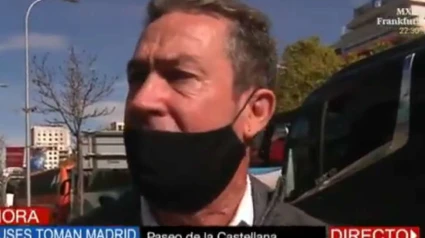 Se trata de Julio García, conductor de autobuses. Las cámaras de Telemadrid captaron el momento emotivo en el que reclamaba más ayuda para el sector del transporte.