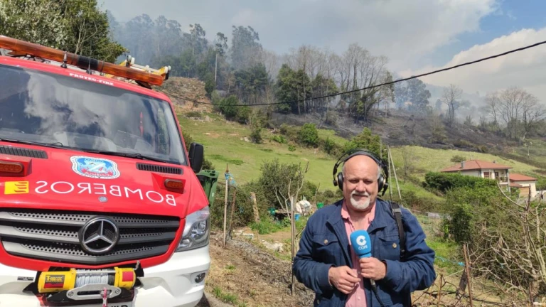 El fuerte viento ahogaba las palabras de nuestro compañero y hacía angustiosa esa conexión. Ese viento impide que los fuegos que arrasan, desde ayer, muchas zonas del Principado se puedan controlar por los bomberos y los brigadistas de la Unidad Militar de Emergencias que se han trasladado desde León hasta Oviedo.