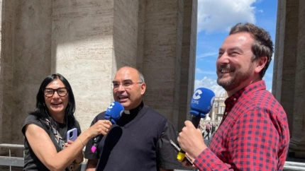 Jorge Bustos y Pilar Cisneros, presentadores de 'Mediodía COPE' entrevistan a Ismael Arevalillo, padre agustino, en Roma