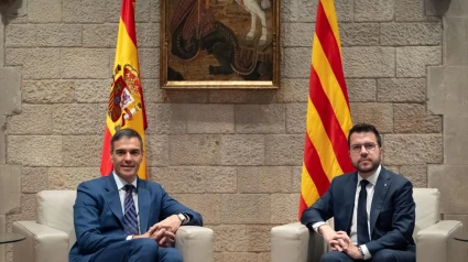 Cerca de una hora ha durado la reunión entre el presidente catalán, Pere Aragonès, y el presidente del Gobierno, Pedro Sánchez, que se ha trasladado a Barcelona para este encuentro en el Palau de la Generalitat.