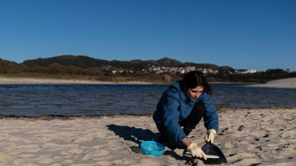 Han sido muchos los que, este pasado fin de semana, han acudido a las playas del litoral gallego a limpiar los pellets de plástico. Proceden de los contenedores que, hace un mes, perdió un barco en alta mar mientras navegaba frente a las costas de Portugal.