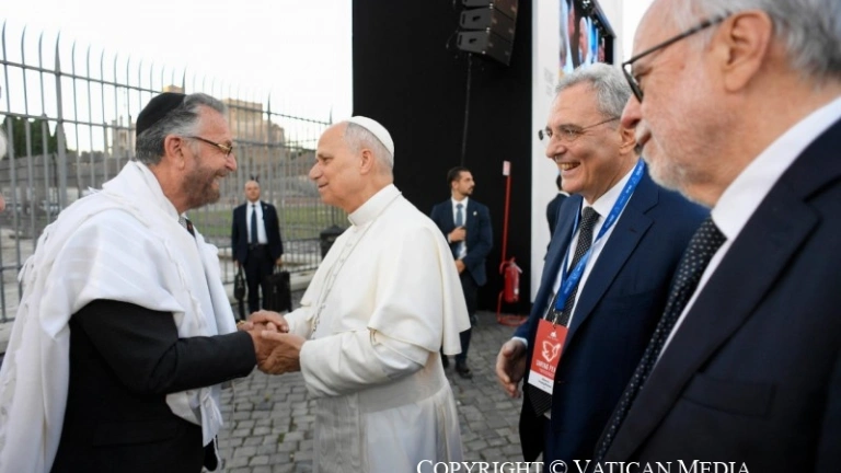 Ayer León XIV quiso dedicar especial atención a las relaciones de la Iglesia con el mundo judío, que están en el corazón mismo del documento conciliar. “Por primera vez en la historia de la Iglesia, dice el Papa, se buscaba dar forma a un tratado doctrinal sobre las raíces judías del cristianismo, que significase un punto de no retorno en el plano bíblico y teológico. En él se sostiene que “la Iglesia de Cristo reconoce que los orígenes de su fe y de su elección se encuentran ya en los patriarcas, en Moisés y en los profetas”. Para la Iglesia es esencial el patrimonio que tiene en común con los judíos, y por eso “deplora los odios, las persecuciones y todas las manifestaciones de antisemitismo de cualquier tiempo y persona contra los judíos”. No por razones políticas, sino estrictamente evangélicas. Por eso, en la misma línea de sus predecesores, el Papa León ha querido confirmar solemnemente que “la Iglesia no tolera el antisemitismo, y lo combate en razón del Evangelio mismo”.