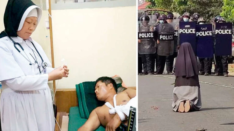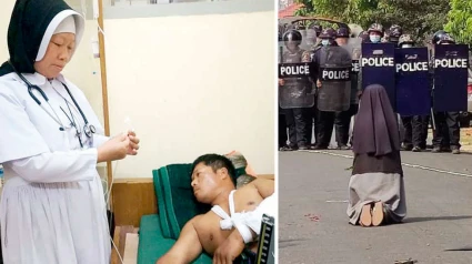 Todos recordamos aquella escena: una monja de rodillas con los brazos abiertos frente a los militares armados hasta los dientes. “¡Matadme a mí, no a la gente!”, les dijo sor Ann Nu Thawng a los soldados. Acaba de cumplirse un año del golpe de Estado en Myanmar y precisamente hoy celebra la Iglesia el día de la Vida Consagrada. Sor Ann pertenece a la orden de San Francisco Javier, y trabaja como enfermera en un país donde los católicos son una pequeña minoría, aunque muy dinámica e implicada en la vida de la comunidad. La BBC incluyó a esta monja birmana en su lista de las cien mujeres del año 2021, algo que debe haber producido una sonrisa irónica a esta mujer aparentemente frágil que, sin embargo, sabe bien que su vida está en manos de Dios.