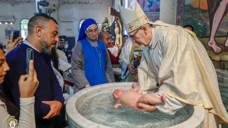 En el umbral de la Navidad, el Patriarca de Jerusalén, cardenal Pizzaballa, ha visitado la única parroquia de la Franja de Gaza. Entre las muchas imágenes conmovedoras de esta visita, me ha impresionada una en la que el Patriarca bautiza a Mario, un bebé de pocos meses.
