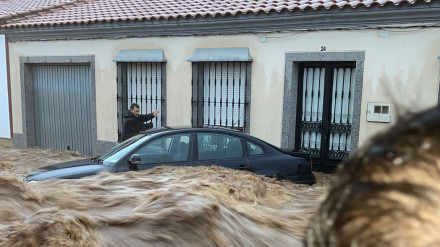 Iván Méndez es uno de los 1.200 vecinos de esta localidad pacense que están sufriendo las intensas lluvias, en casa de sus suegros se han caído las paredes