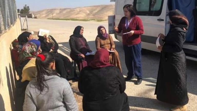 "Seguimos un horario fijado para que la gente sepa exactamente cuándo venimos. Cada día tenemos que viajar una hora para viajar hasta estos pueblos y nos quedamos allí, de media, cinco horas", cuenta Vera, una de las tres personas que viajan cada día en esta “clínica móvil” por el desierto para dar servicio en 5 pueblos beduinos distintos a una hora de belén. Ella es enfermera y viaja siempre acompañada por una ginecóloga y un pediatra.