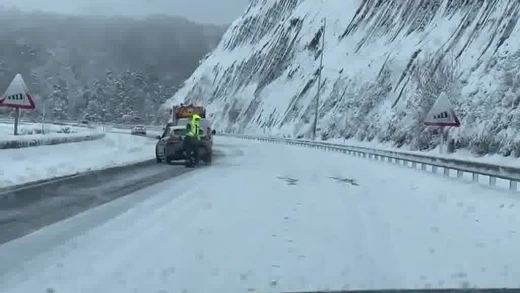 Sergio ya ha podido proseguir su marcha hacia Santander, meta de su viaje, eso sí "circulando muy despacio". Sergio Tens es camionero y tenía que cubrir con la mercancía el trayecto Soria-Santander, pero la borrasca Fien le ha obligado a parar en Aguilar del Campoo al ser imposible transitar por la A-67.