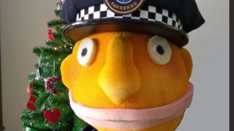 Esa conga la encabeza el Poli Paco, un muñeco, muy parecido al famoso Epi de Barrio Sesamo, que utiliza la policía de Sanxenxo para enseñar a los niños más pequeños. Poli Paco ya es toda una referencia en las comisarias municipales de toda España. Este muñeco uniformado es el alter ego, de un policia real llamado Abelardo Martínez.