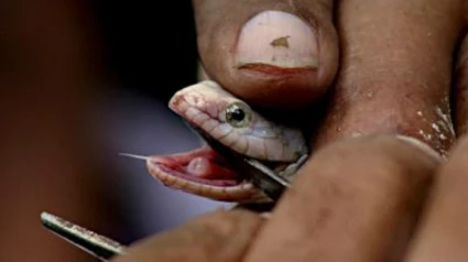 Un hombre pega un mordisco a una serpiente, tras ser atacado por ella, y acaba en el hopsital