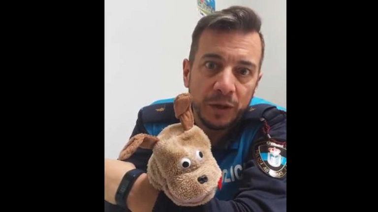 José Vázquez, el policía de Oviedo que enseña Educación vial con marionetas y canciones
