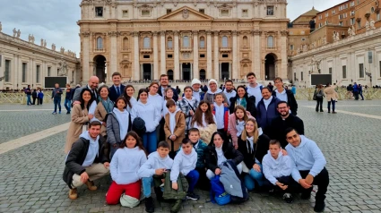 Quince niños junto con su párroco Miguel David Pozo han viajado a Roma para ver al Papa. Le han podido contar la labor que realizan en la parroquia Santa María Luisa de Marillac